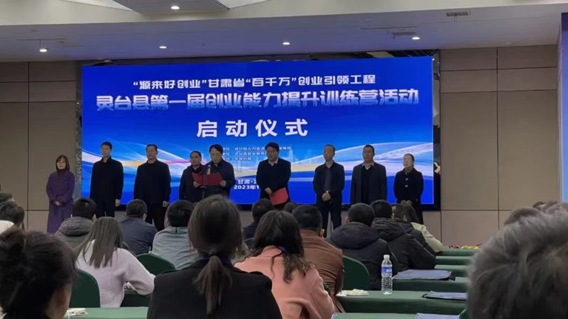 11月29日,“源來(lái)好創(chuàng)業(yè)”甘肅省“百千萬(wàn)”創(chuàng)業(yè)引領(lǐng)工程靈臺(tái)縣第一屆創(chuàng)業(yè)能力提升訓(xùn)練營(yíng)啟動(dòng)儀式在市級(jí)創(chuàng)業(yè)孵化基地靈臺(tái)縣正宇建筑公司會(huì)議室隆重舉行??h委常委、縣委組織部部長(zhǎng)李逢春同志應(yīng)邀出席儀式并講話(huà),縣政府就業(yè)工作領(lǐng)導(dǎo)小組成員單位分管負(fù)責(zé)同志和各鄉(xiāng)鎮(zhèn)及縣城市社區(qū)領(lǐng)隊(duì)、參訓(xùn)學(xué)員共110多人參加活動(dòng)。